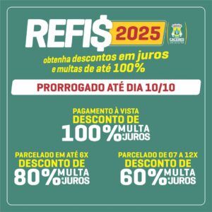 Cáceres REFIS 2025: Prefeitura de Cáceres prorroga prazo para regularização de débitos até 10 de outubro
