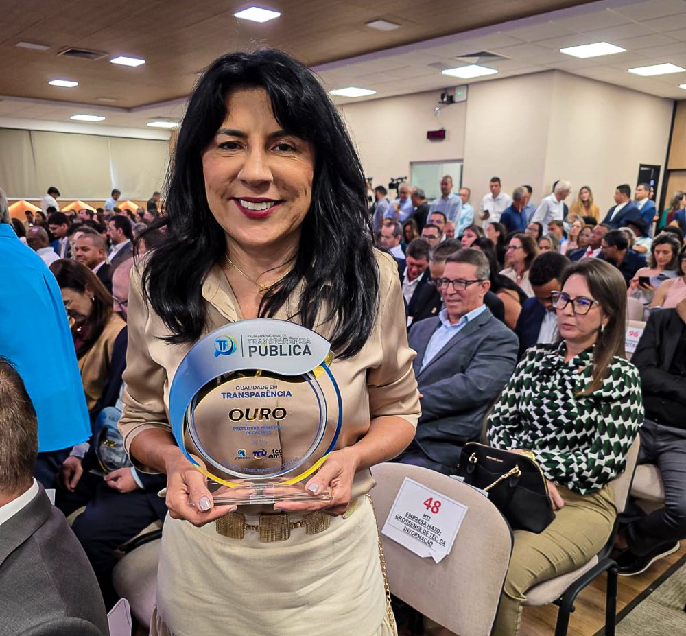 Na manhã desta quarta-feira (10), a prefeita Eliene Liberato Dias e o Controlador-Geral do Município, Robson Máximo da Costa, receberam das mãos do presidente do Tribunal de Contas do Estado de Mato Grosso (TCE-MT), conselheiro Sérgio Ricardo, o Selo Ouro de Transparência Pública.