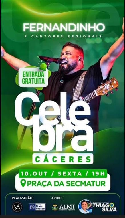 Nesta sexta-feira, a cidade de Cáceres será palco de uma noite inesquecível com o evento Celebra Cáceres, reunindo fé, música e comunhão em um ambiente de celebração e alegria. A partir das 19h, a Praça da Secmatur se transforma em um grande espaço de louvor e cultura!