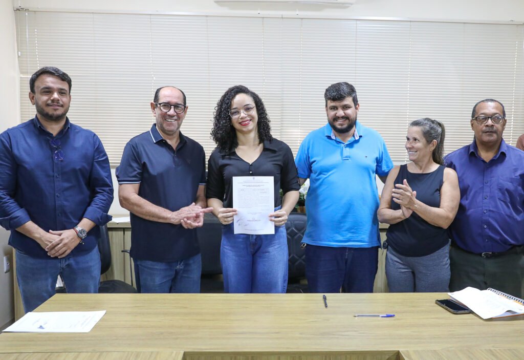 Na manhã desta quinta-feira (09), a Prefeitura de Cáceres realizou a solenidade de posse de sete novos profissionais da área da saúde aprovados em concurso público. A cerimônia foi conduzida pelo vice-prefeito Luiz Landim e aconteceu no gabinete da prefeita Eliene Liberato Dias, reunindo autoridades municipais, secretários, vereadores e familiares dos empossados.